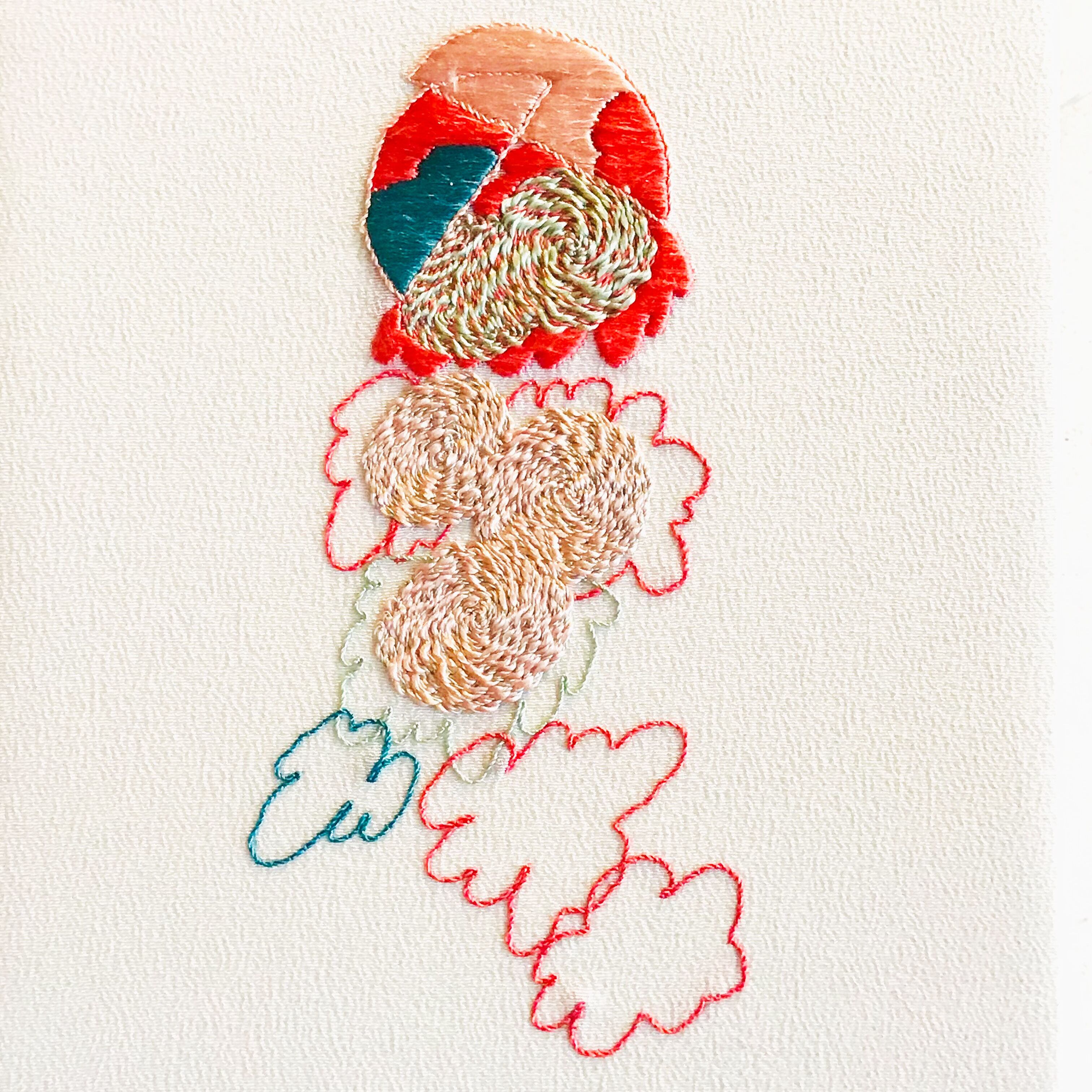 着物の生地に絹糸刺繍の作品です